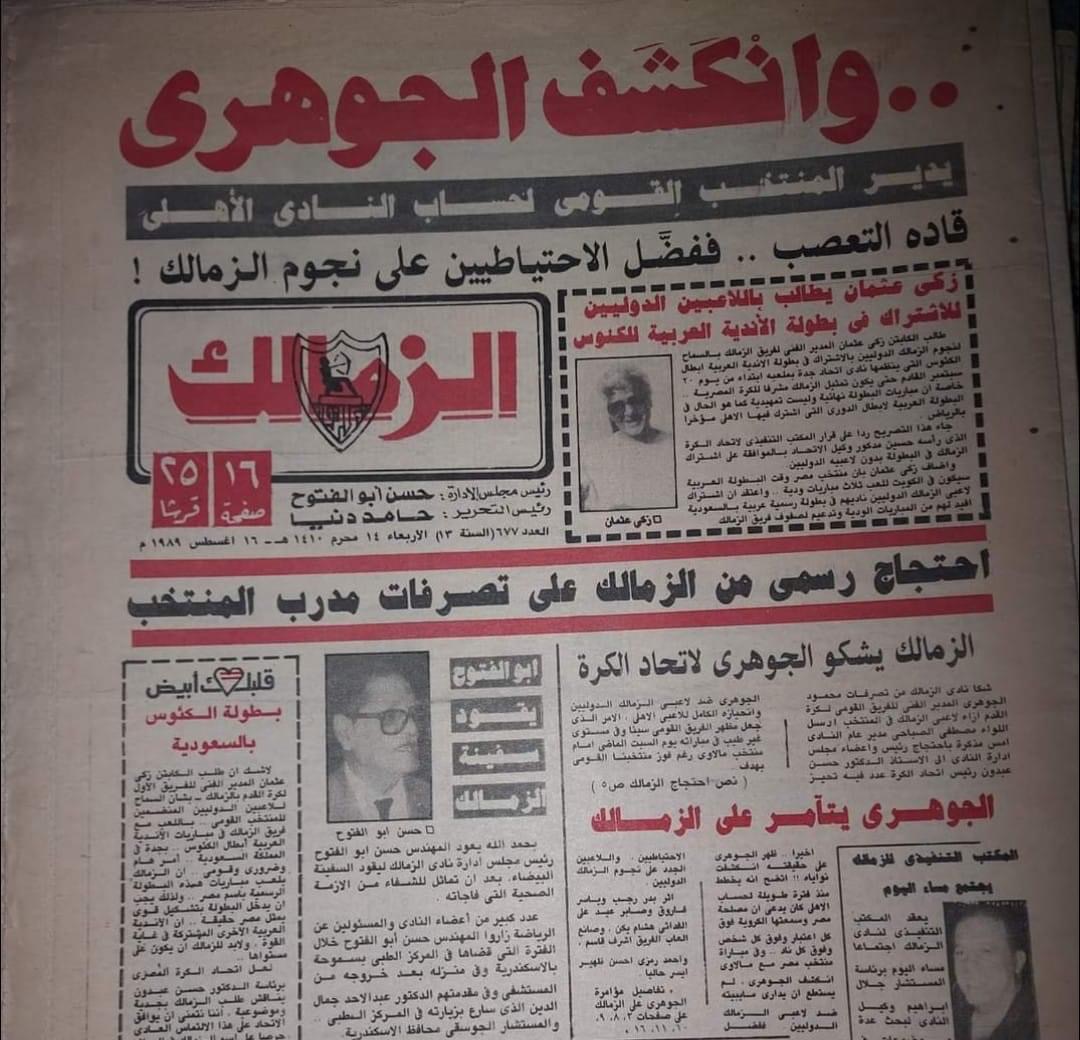 الزمالك في ١٩٨٩ : الجوهري متعصب 😡 و فاسد و متآمر يكره الزمالك❌ الزمالك بعدها ب٣ سنوات يتعاقد مع الجوهري 👍 المتعصب المتآمر الذي يكره الزمالك و نجومه 😃👏